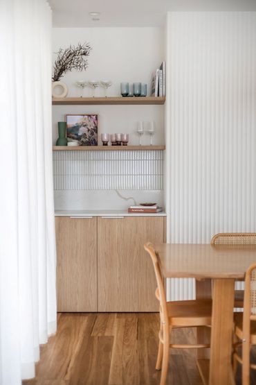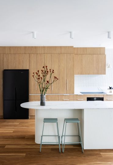 Older Canberra homes often face challenges such as suboptimal solar orientation, and disfunctional layouts; this home was no exception. However, with a visionary design collaboration by New Spaces and Baxter Design, the interior was reconfigured to open up and harness the northern aspect at the rear of the home. Warm tones and timber are used throughout the home. A few curved features, and a well considered lighting plan contribute to the creation of a warm and inviting atmosphere.