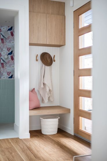 Internal access: An existing garage now connects to the home through the new laundry/mudroom, flowing seamlessly into a generous kitchen, perfectly supporting the busy family's day-to-day functions and movements.